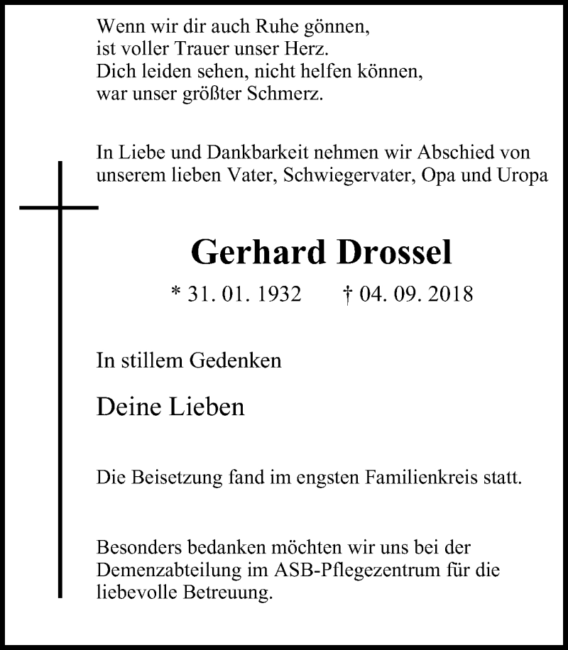 Pflanzen Sie einen Gedenkbaum für Gerhard Drossel