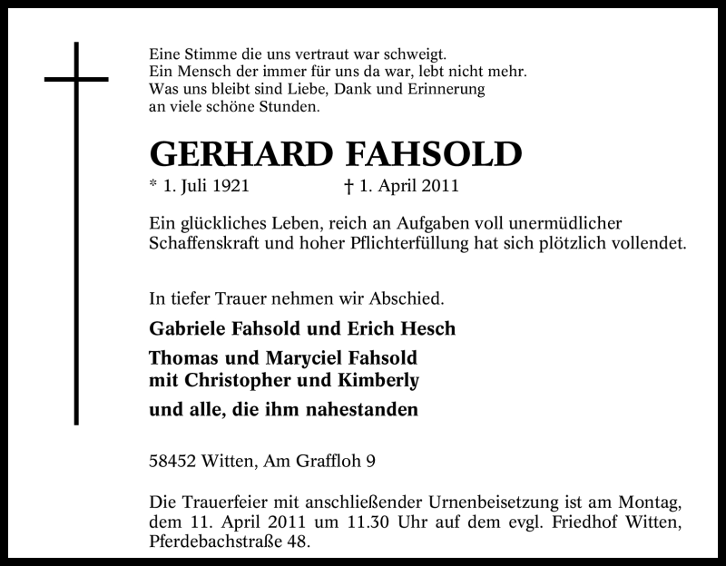 Pflanzen Sie einen Gedenkbaum für GERHARD FAHSOLD