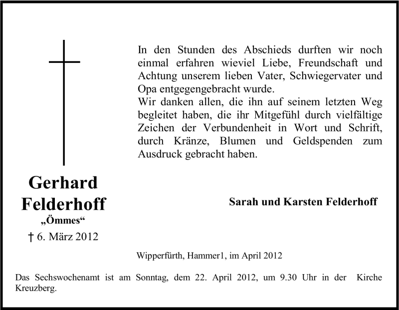 Pflanzen Sie einen Gedenkbaum für Gerhard Felderhoff