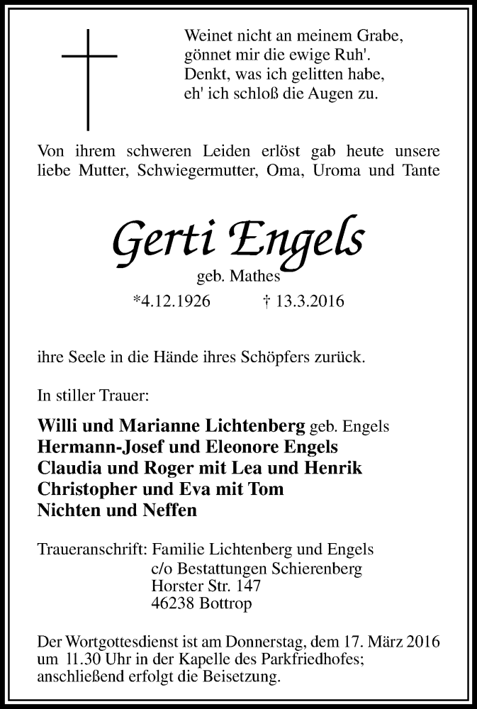 Pflanzen Sie einen Gedenkbaum für Gerti Engels