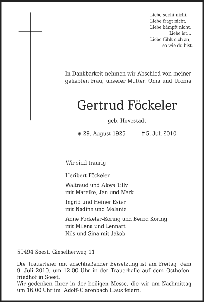 Pflanzen Sie einen Gedenkbaum für Gertrud Föckeler