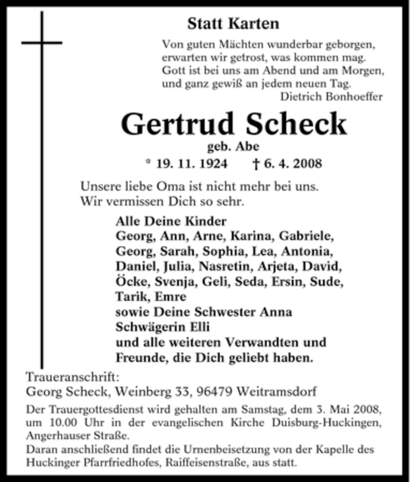 Pflanzen Sie einen Gedenkbaum für Gertrud Scheck