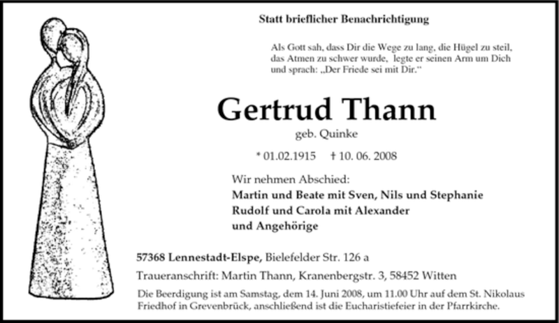Pflanzen Sie einen Gedenkbaum für Gertrud Thann