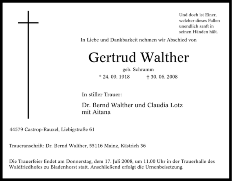 Pflanzen Sie einen Gedenkbaum für Gertrud Walther