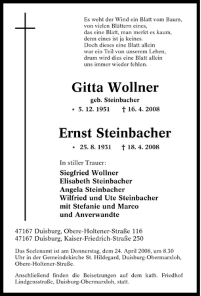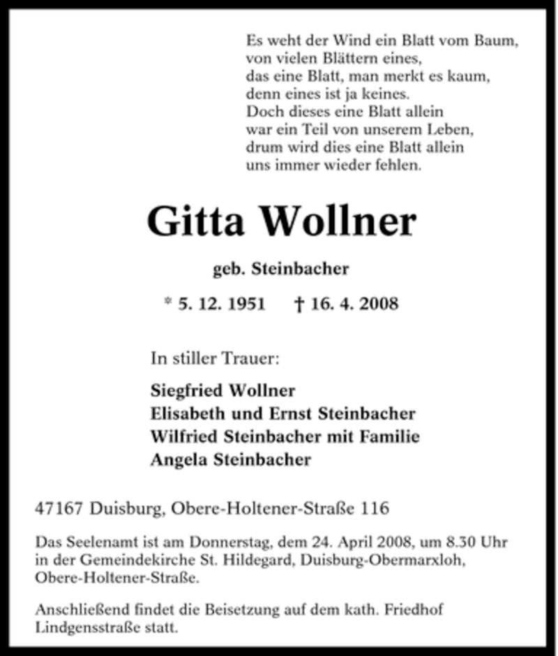 Pflanzen Sie einen Gedenkbaum für Gitta Wollner