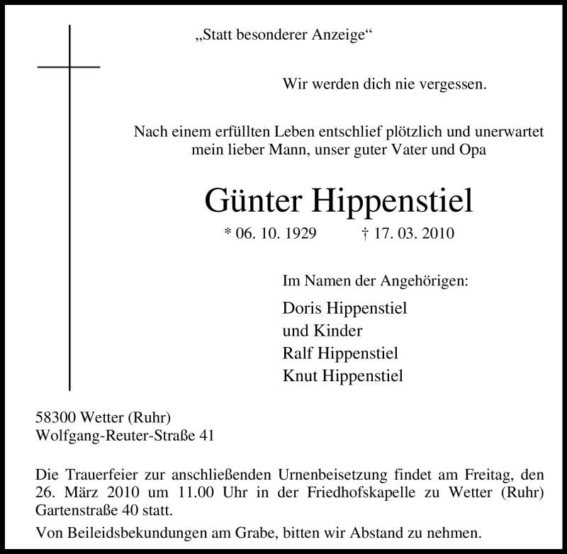 Pflanzen Sie einen Gedenkbaum für Günter Hippenstiel