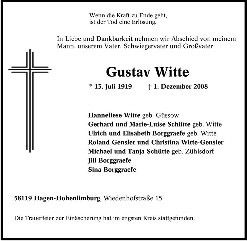 Pflanzen Sie einen Gedenkbaum für Gustav Witte
