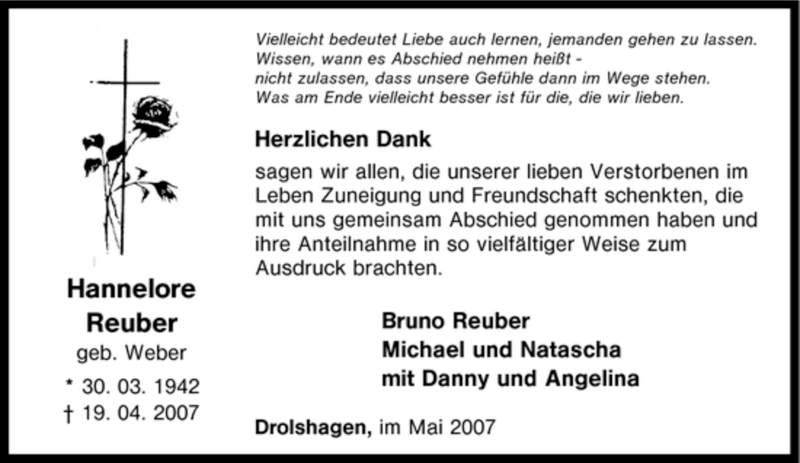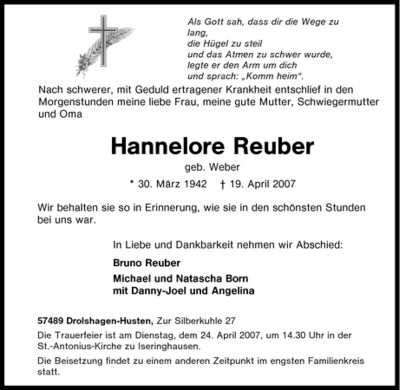 Hier finden Sie alle Traueranzeigen aus der Zeitung, die bisher für Hannelore Reuber erschienen sind. Weitere Traueranzeigen, die in der Zeitung erscheinen, werden hier ebenfalls aufgelistet