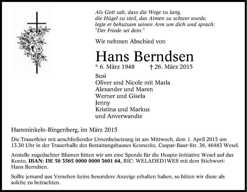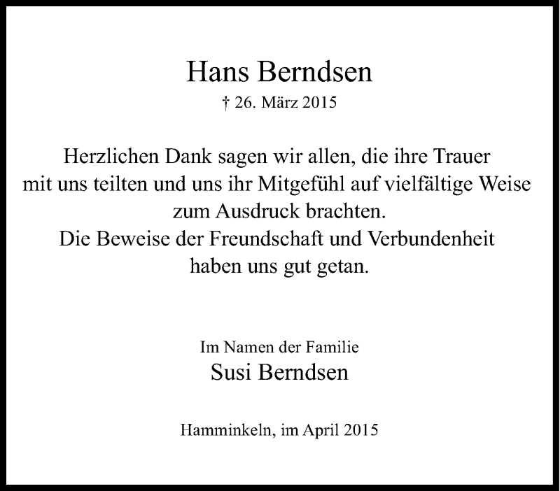 Pflanzen Sie einen Gedenkbaum für Hans Berndsen