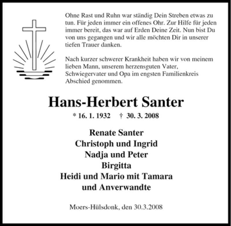 Pflanzen Sie einen Gedenkbaum für Hans-Herbert Santer