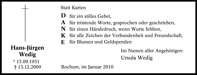 Pflanzen Sie einen Gedenkbaum für Hans-Jürgen Wedig