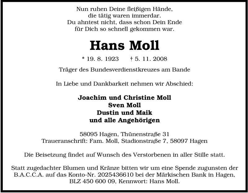 Pflanzen Sie einen Gedenkbaum für Hans Moll