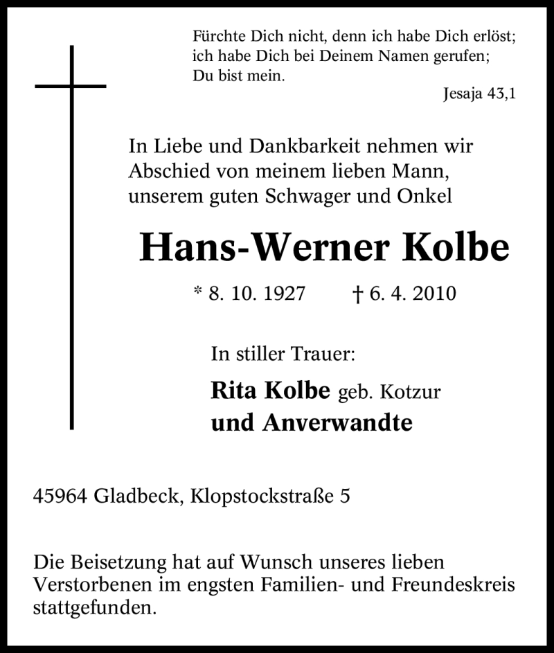 Pflanzen Sie einen Gedenkbaum für Hans-Werner Kolbe