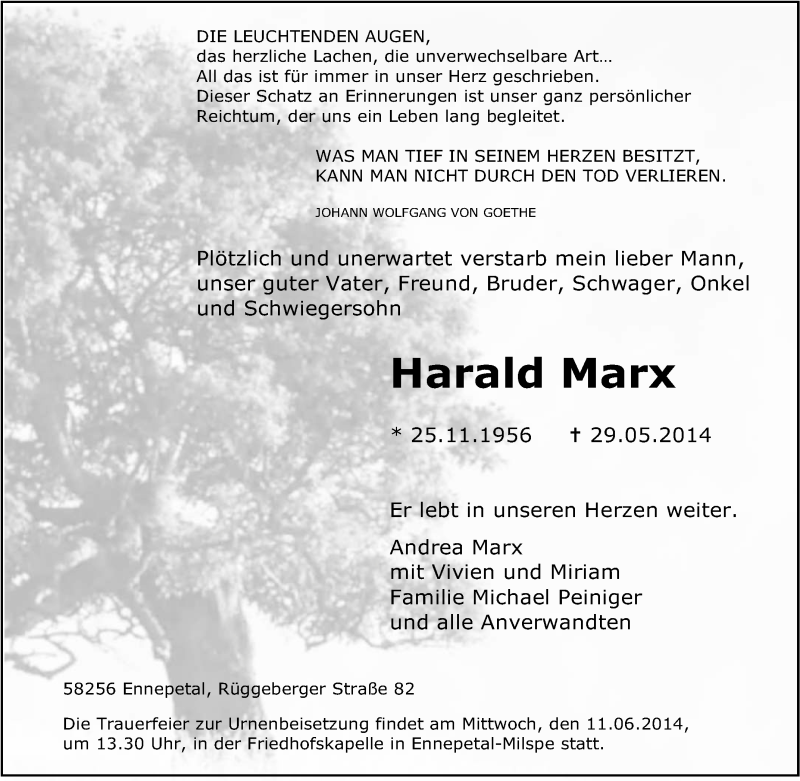 Pflanzen Sie einen Gedenkbaum für Harald Marx