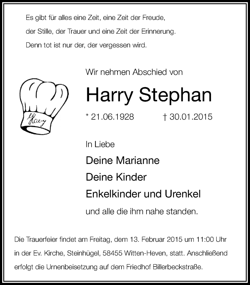 Hier finden Sie alle Traueranzeigen aus der Zeitung, die bisher für Harry Stephan erschienen sind. Weitere Traueranzeigen, die in der Zeitung erscheinen, werden hier ebenfalls aufgelistet