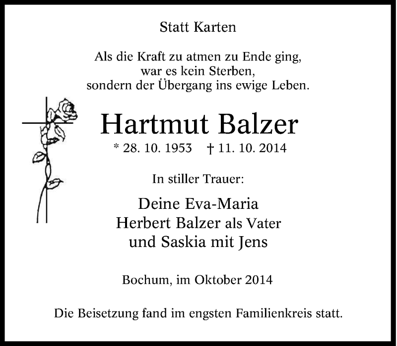 Pflanzen Sie einen Gedenkbaum für Hartmut Balzer
