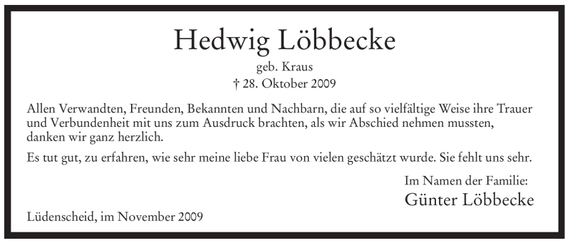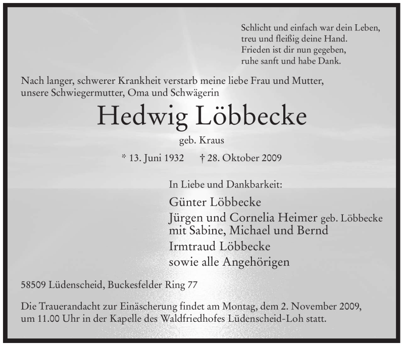 Pflanzen Sie einen Gedenkbaum für Hedwig Löbbecke