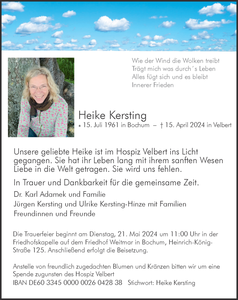 Pflanzen Sie einen Gedenkbaum für Heike Kersting