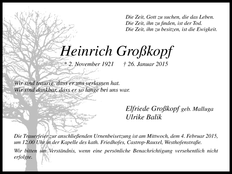Pflanzen Sie einen Gedenkbaum für Heinrich Großkopf