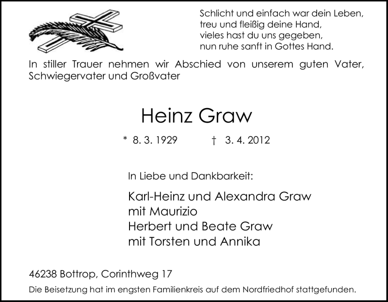 Pflanzen Sie einen Gedenkbaum für Heinz Graw