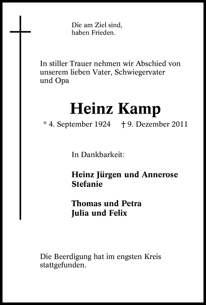 Pflanzen Sie einen Gedenkbaum für Heinz Kamp