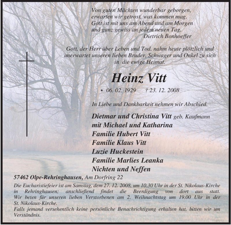 Pflanzen Sie einen Gedenkbaum für Heinz Vitt