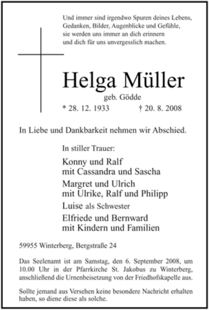 Hier finden Sie alle Traueranzeigen aus der Zeitung, die bisher für Helga Müller erschienen sind. Weitere Traueranzeigen, die in der Zeitung erscheinen, werden hier ebenfalls aufgelistet