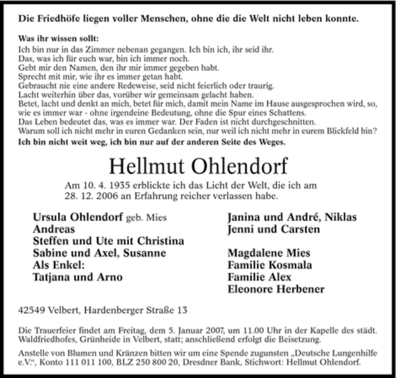 Pflanzen Sie einen Gedenkbaum für Hellmut Ohlendorf