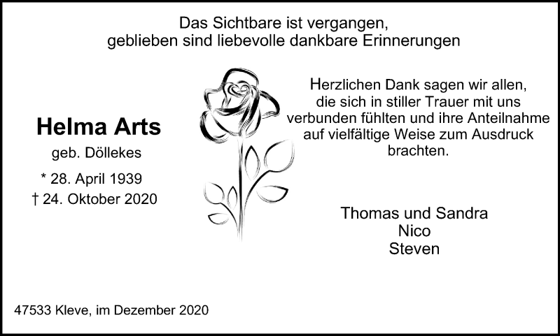 Hier finden Sie alle Traueranzeigen aus der Zeitung, die bisher für Helma Arts erschienen sind. Weitere Traueranzeigen, die in der Zeitung erscheinen, werden hier ebenfalls aufgelistet