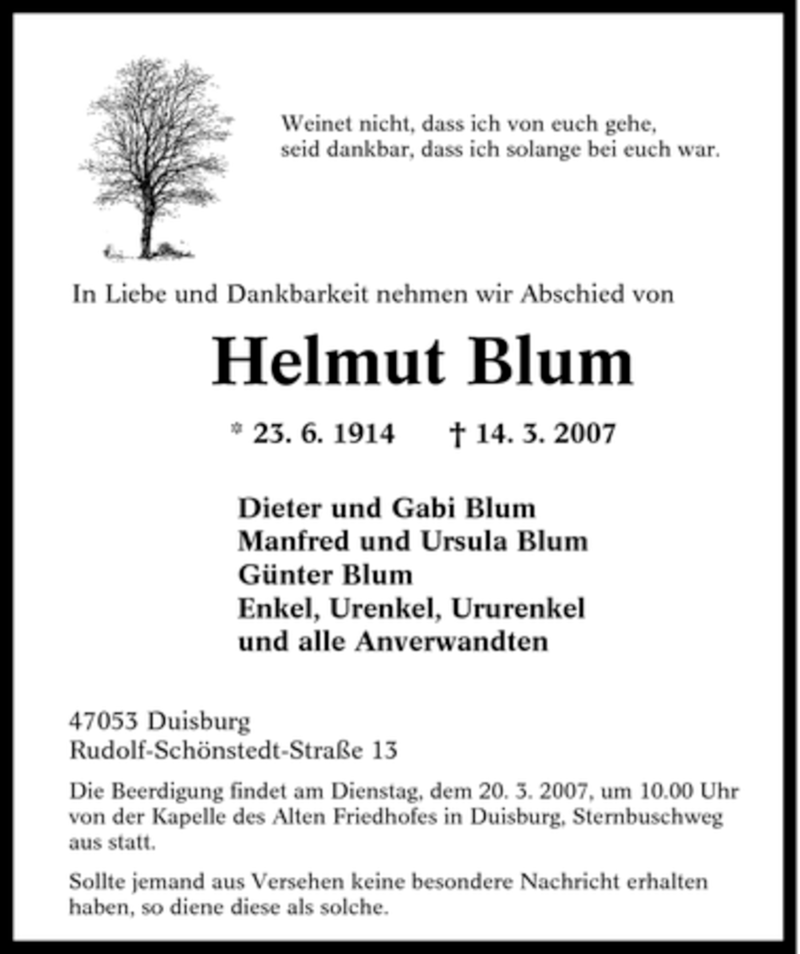 Pflanzen Sie einen Gedenkbaum für Helmut Blum