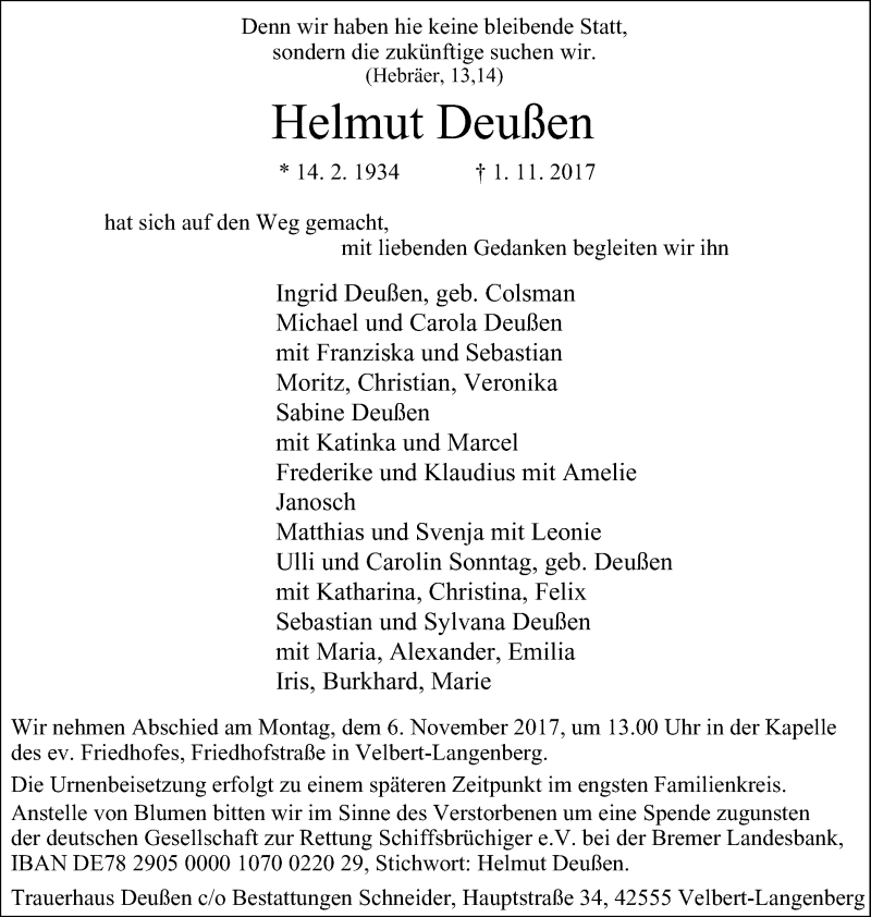 Pflanzen Sie einen Gedenkbaum für Helmut Deußen