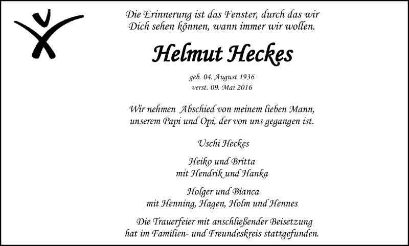 Pflanzen Sie einen Gedenkbaum für Helmut Heckes