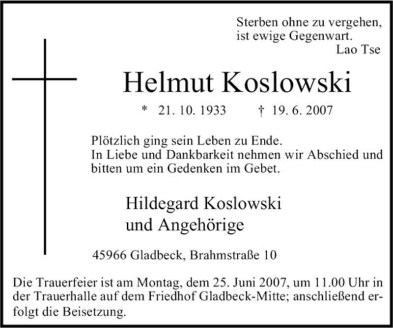 Pflanzen Sie einen Gedenkbaum für Helmut Koslowski
