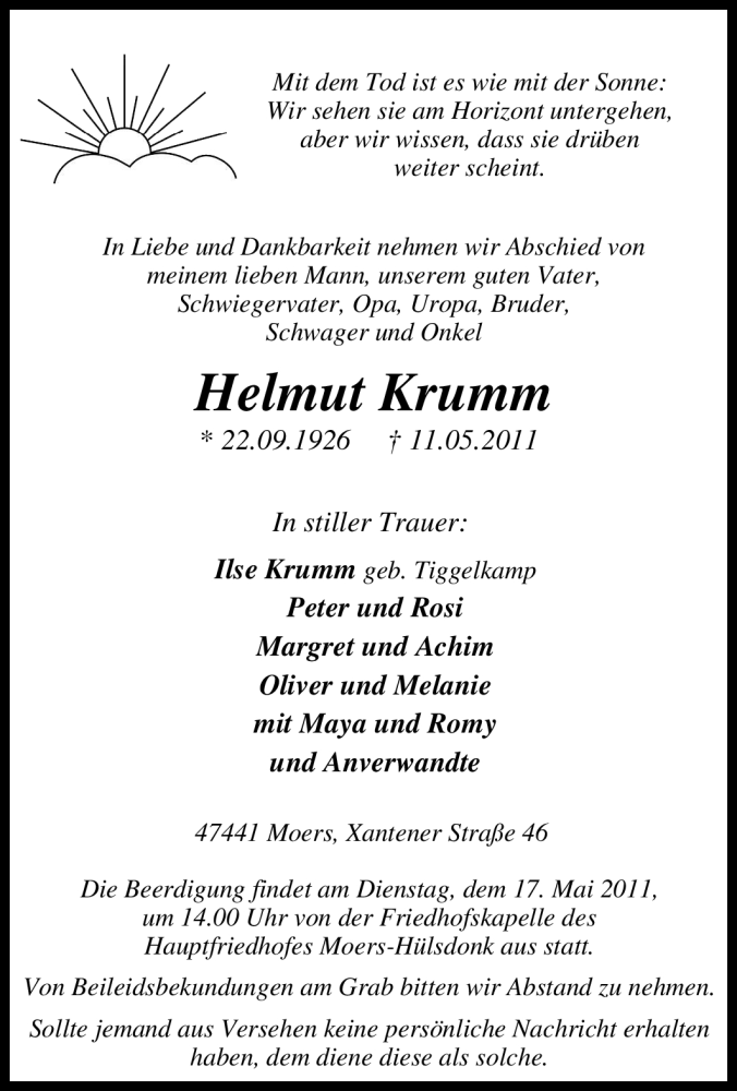 Pflanzen Sie einen Gedenkbaum für Helmut Krumm