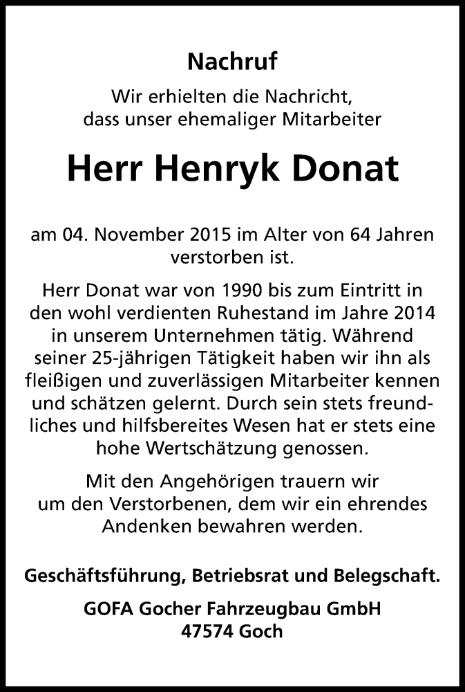 Pflanzen Sie einen Gedenkbaum für Henryk Donat