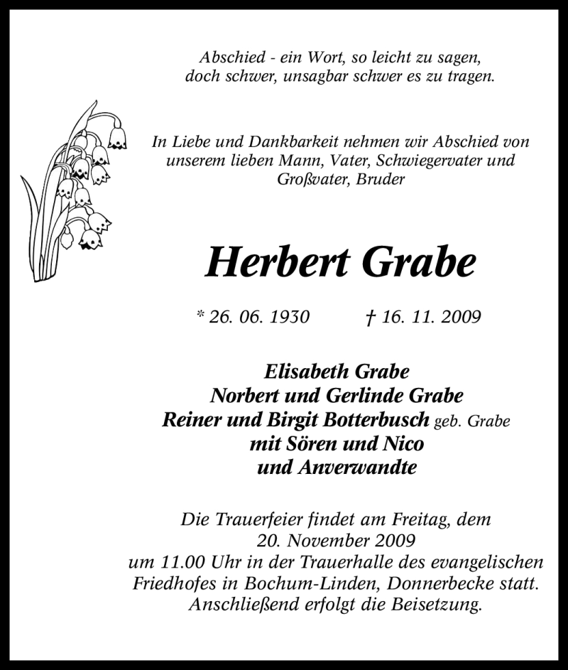Pflanzen Sie einen Gedenkbaum für Herbert Grabe