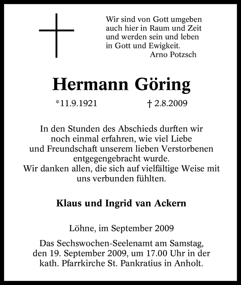 Pflanzen Sie einen Gedenkbaum für Hermann Göring