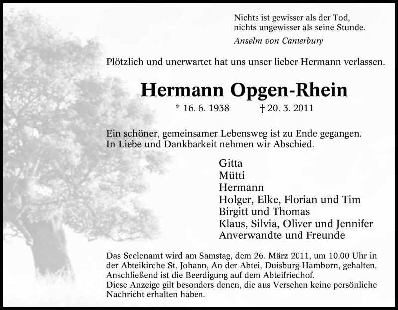 Pflanzen Sie einen Gedenkbaum für Hermann Opgen-Rhein