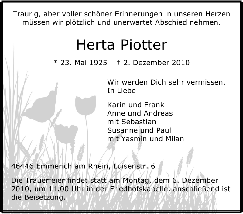 Pflanzen Sie einen Gedenkbaum für Herta Piotter