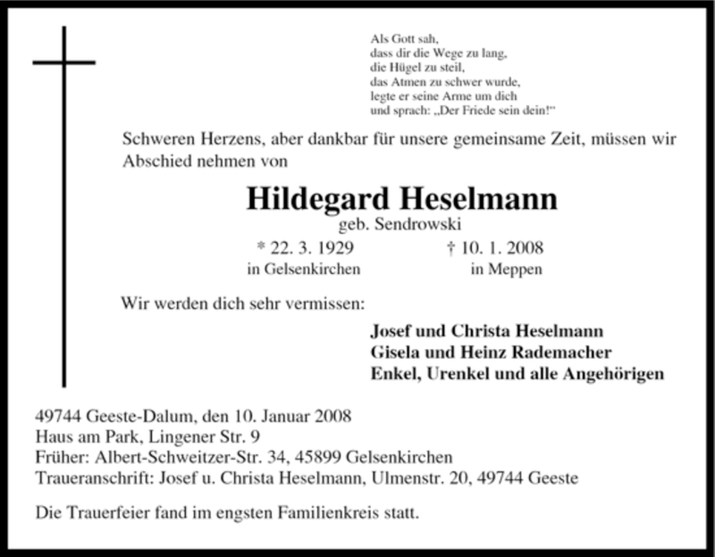 Pflanzen Sie einen Gedenkbaum für Hildegard Heselmann