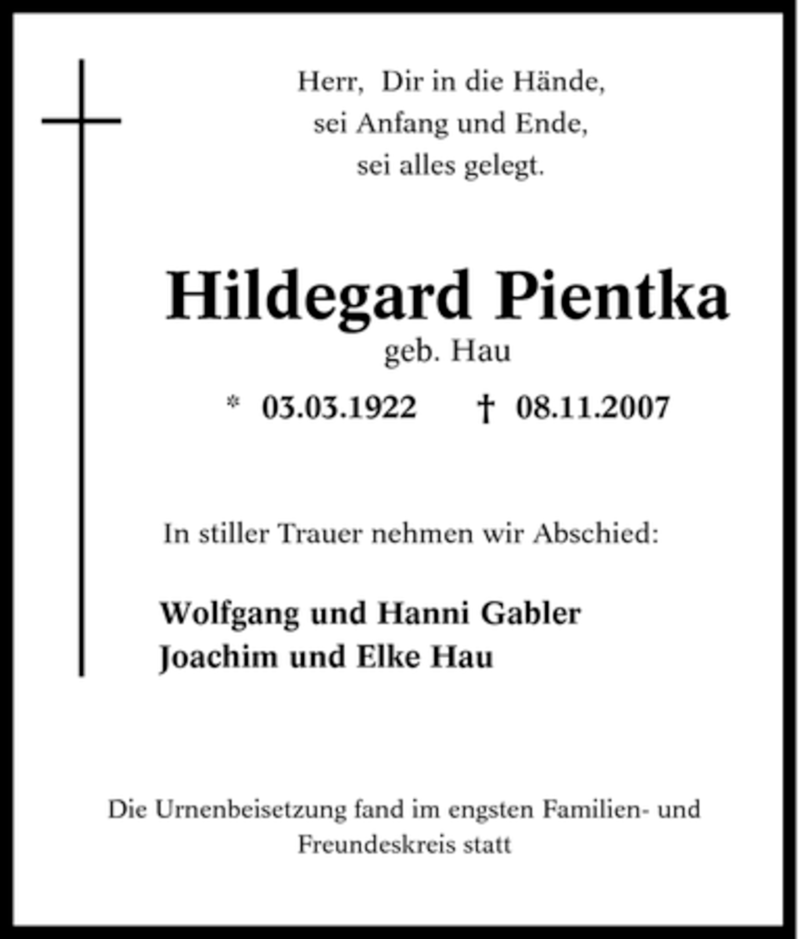 Pflanzen Sie einen Gedenkbaum für Hildegard Pientka
