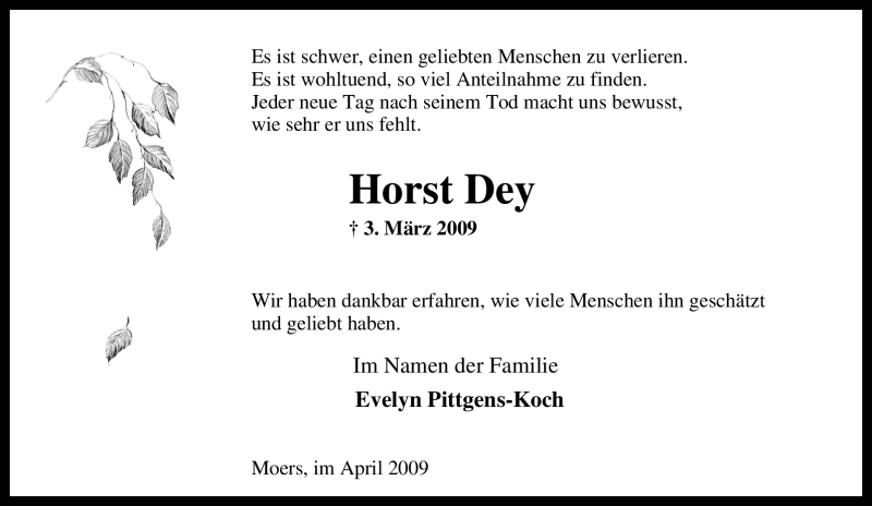 Pflanzen Sie einen Gedenkbaum für Horst Dey
