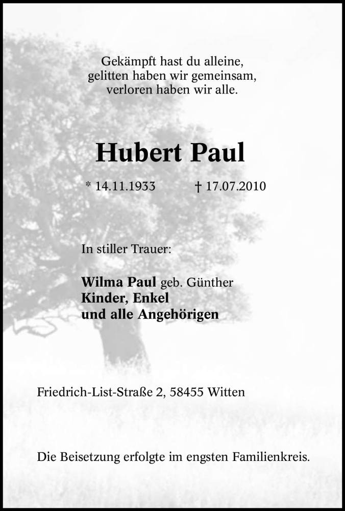 Pflanzen Sie einen Gedenkbaum für Hubert Paul