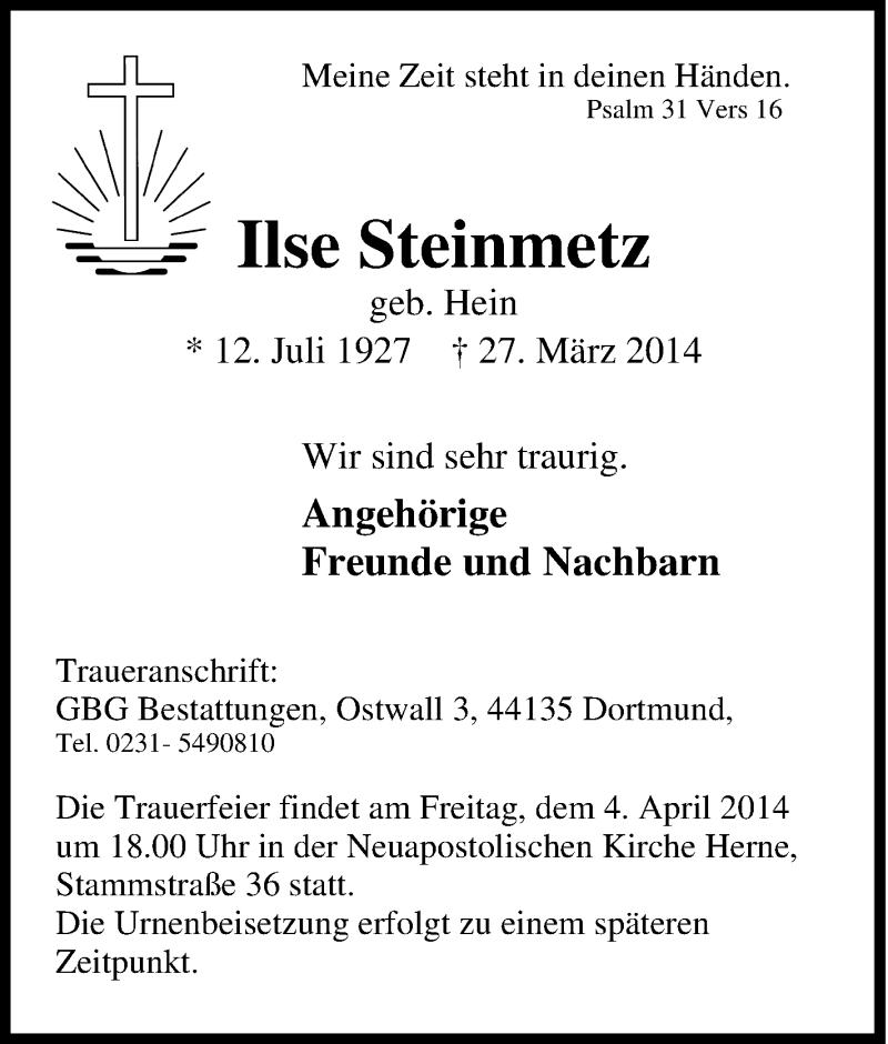 Pflanzen Sie einen Gedenkbaum für Ilse Steinmetz