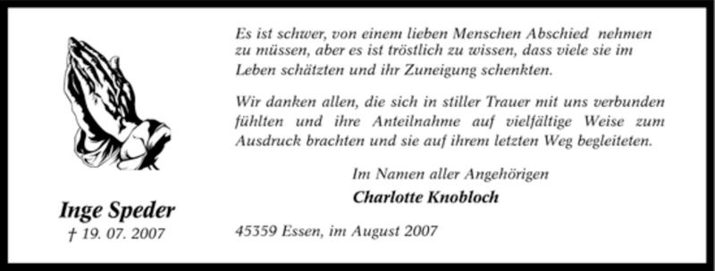Pflanzen Sie einen Gedenkbaum für Inge Speder