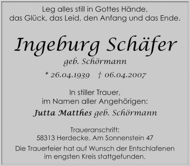 Pflanzen Sie einen Gedenkbaum für Ingeburg Schäfer