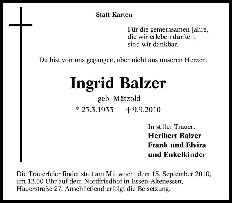 Pflanzen Sie einen Gedenkbaum für Ingrid Balzer