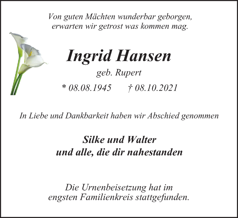 Pflanzen Sie einen Gedenkbaum für Ingrid Hansen