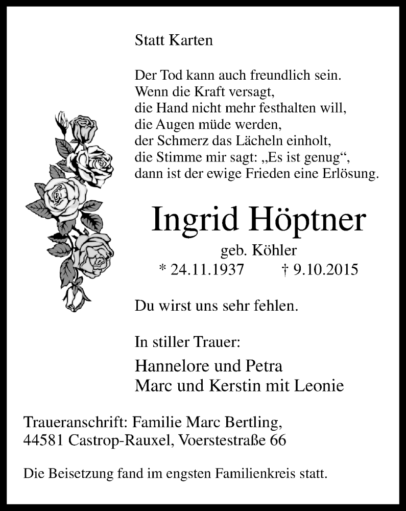 Pflanzen Sie einen Gedenkbaum für Ingrid Höptner