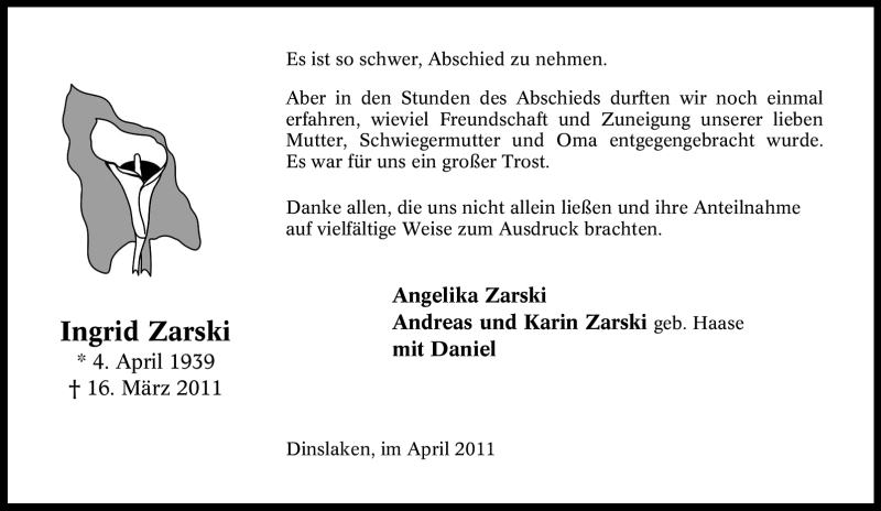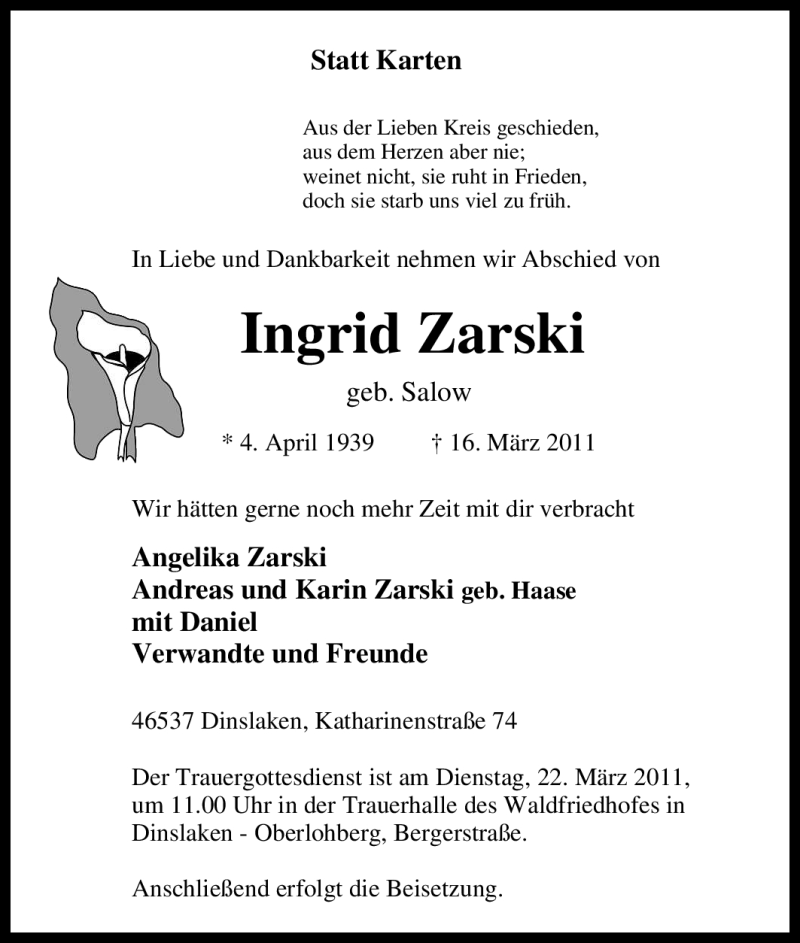 Pflanzen Sie einen Gedenkbaum für Ingrid Zarski